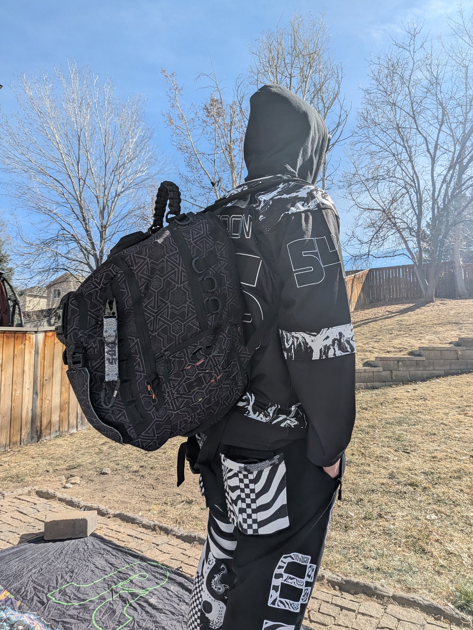 - Space for a 3L water bladder to convert this into a hydro & slots at the top of the bag for bladder hose to run through. Bladder is not included!