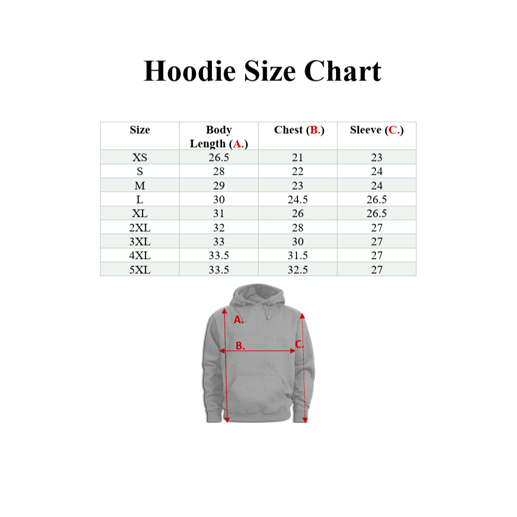 PLEASE SEE SIZE CHART & REMEMBER TO SIZE UP ON THESE COMPARED TO YOUR NORMAL BBS HOODIE!!!