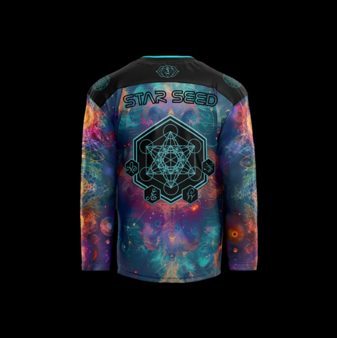 -Back of Baseball jerseys has BBS seed of Life being held by a visual representation of the As Above, So Below concept.